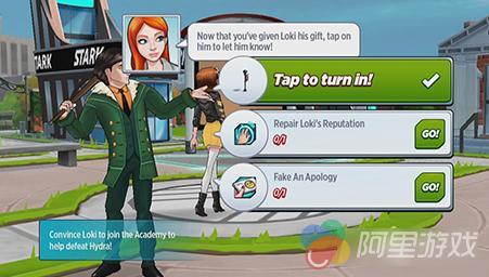 《漫威复仇者学院》在玩法上,和同类游戏相比就显得太中规中矩了——不断地做任务。玩家根据任务的要求,点触任务角色,选择他们要做的任务,然后放置一段时间,待任务完成后,你就可以收获经验值、金币等。