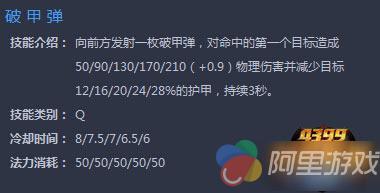 性价比很高的一个技能,不变的消耗,随着升级,冷却不断减少,伤害也提高,减少的护甲也变得多起来。
