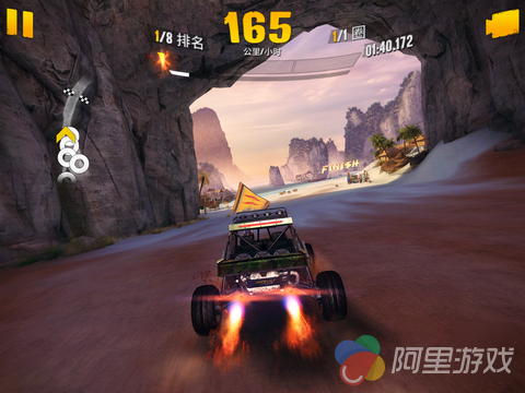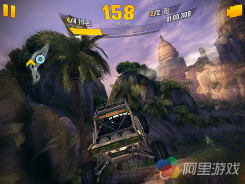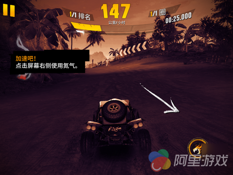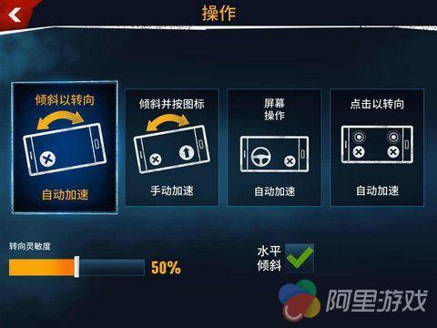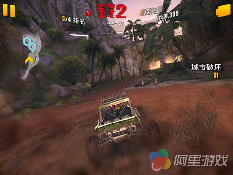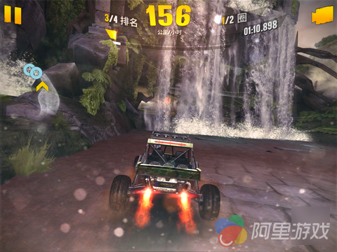 作为一款出色的竞速游戏,优秀的操作系统绝对必不可少,在《狂野飙车:极限越野》当中,游戏共为玩家提供了四种操作方式,不过对于 iOS 触屏来说,小编还是建议大家选用系统默认的重力感应模式,本作在起步与转弯阶段弱化了对操作的要求,也降低了一定的上手难度,不过由于越野地形以及车辆自身的限制,导致了本作中座驾有着比较大的物理惯性,转向变得没那么简单,也更需要玩家数量的操控,点击屏幕左侧为刹车,配合方向控制可以完成漂移动作,漂移的过程当中会给车辆补充氮气,只要画面上方的蓄气槽中有气,就可以点击加速。当然,只有蓄气槽全满的情况下,才能放出完美氮气加速,效果不是一般的碉堡。点击右侧释放氮气,接着,就可以让他人看你的车尾灯了。