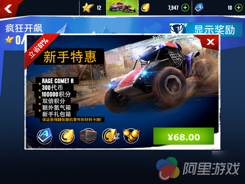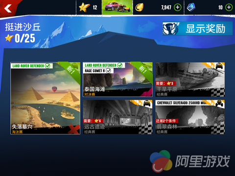 如果说精致的音画是将玩家吸引来的重要手段,那么能否让玩家长时间的在游戏中驻足就需要游戏内容的发力了。而在这方面,《狂野飙车:极限越野》的表现也同样出色,游戏的内容以区块的形式被罗列在首页的各处,点击唤醒二级菜单则能为玩家解答“究竟如何才能开启此项功能”的疑惑。当然占屏幕比重最大的,依然是玩家自己的座驾,这要是通过付费将一款靓车置于首页,该是何等的拉风。慢着,这难道是GL社引诱玩家课金的套路吗?