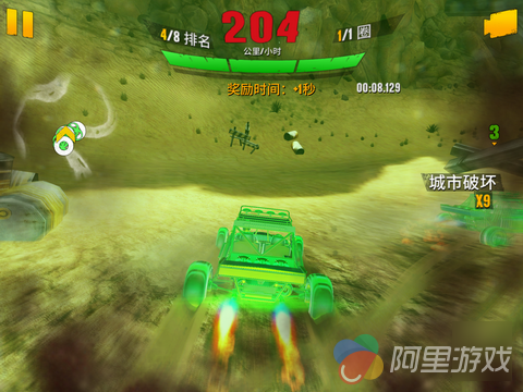 追求碰撞时所带来的震动、碎屏感受是很多游戏迷醉心于赛车竞速类手游的一大原因,而在这一方面,本作表现的依旧非常出色,开发者摆出一幅“只要你不撞坏我精心设计的山山水水,其他我都依你”的姿态,在游戏当中设置了大量的破坏元素,伴随着满屏幕的碎屑相当给力。当然,玩家们最乐意看到的还是车辆之间的“亲密接触”。在车辆相撞并导致其中一辆报废时,游戏会自动进入“子弹时间”,缓慢的播放着车辆离开世界前的最后瞬间,何必要这么互相伤害呢?