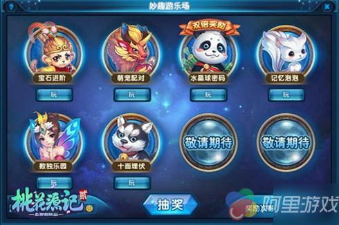 在桃源世界里,有这样一个地方,那里欢声笑语不断,永享太平盛世!那里就是《桃花源记2》中的妙趣游乐场!游乐场里融合了多种市面上流行的小游戏,并结合了游戏自身的元素,大大增添了游戏的趣味性!轻松休闲的宝石进阶,好玩不腻的萌宠配对,还有考验智力的数独乐园、十面埋伏等等!丰富多样的休闲玩法让整个游乐场妙趣横生,一度打破了传统回合制游戏玩法单一的局面,让休闲娱乐得到了最好的诠释!
