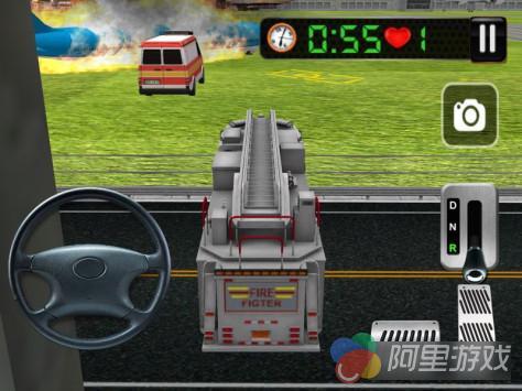 《机场客机救援3D》的玩法非常低领和无聊,玩家只要控制着你的救火车按照地上的方向键指示,将其开到失事飞机的所在地,并停在指定地点对其进行救火,只要能在倒计时结束前将火扑灭就算成功。游戏采用了关卡模式进行,共有10个关卡可以让玩家进行游戏,不过每个关卡中的玩法都是完全相同的,没有任何的区别。游戏的操作采用了比较拟真的方式,像什么方向盘、挂档板儿、油门刹车都应有尽有,但实际的操作手感却非常糟糕,而且车辆的形式速度极为缓慢,等它救火估计烧的连“黑匣子”都没了。而且本作居然只为玩家们准备了两辆不同的救火车,简直偷懒到了极点。PS:黑匣子是飞机上用于记录飞行状况的电子设备,主要用于判定飞机失事的原因。