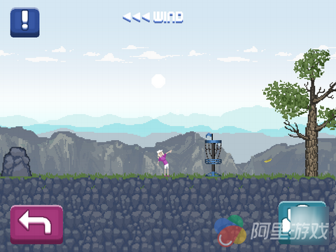 就如同游戏中所描述的那样,游戏中采用了像素风格的画面设计,虽然名字中包含了高尔夫,但是游戏的场景可并不是在什么高级的高尔夫球场中,而更像是在野外,而在野外中生长的树木,还有许多大型的石头,这些物品将会对玩家的游戏产生巨大的影响。在游戏中玩家的目标非常简单,玩家需要将手中的飞盘顺利的飞到场景中的筐中,听起来似乎很简单,但是真正的体验了游戏之后才能深刻理解到游戏的难度。