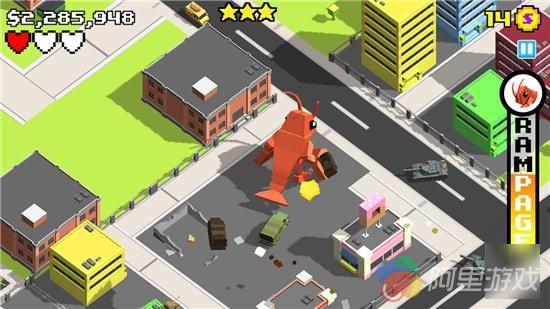 这些庞然大物会自动行走,当它遇到任何建筑物时,不由分说会将其破坏粉碎,根据建筑物大小的不同,粉碎的时间也会有所区别,这个还是很形象的。当然了,作为一只在城市里肆无忌惮搞破坏的怪物,必定会受到当地警察甚至是军队的照顾,还没等我拆几栋房子,警察和军队就陆陆续续涌上了街头,面对这些家伙,我只能说:向我开炮!