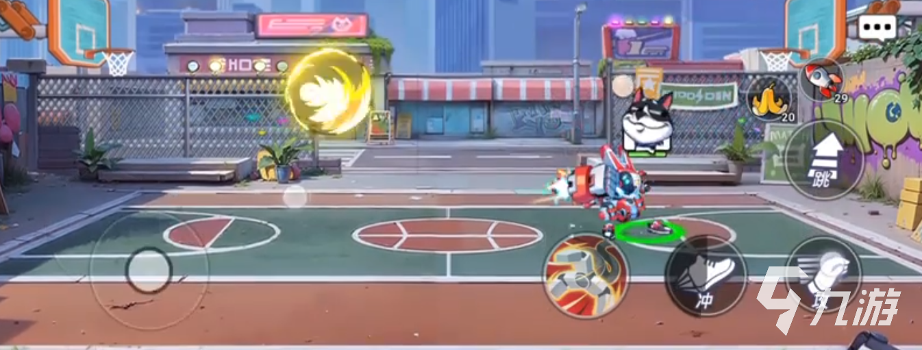 机械兔的核心就在于拥有速度以及跳跃的能力。实际测试下来,它的跳跃高度可以达到5米以上,加速技能在触发之后,可以直接冲到每秒8米,跑起来要超过很多防守角色。这种技能机制让他根本不需要拘于你地面的缠斗,打起来确实是快准狠。趁着对手防线还没有成型时,一个加速突破,然后借着跳跃就能完成高空灌篮,得分的效率还是比较高的。