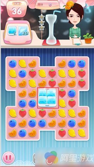 此时在冰块所覆盖的区域消除水果,被消除的地方的冰块就能逐渐被融化。当然,使用道具消除这些区域的水果同样可以达到冰块消除的效果。