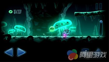 游戏的操作非常简单,采用虚拟按键模式,在左下角有两个按钮可以控制主角左右移动,右下角则有跳跃、速降与调整黏球身材等按钮,我们可以根据冒险过程的需要来进行走位与控制。可以说,本作还是属于比较轻松的冒险游戏,而当面对敌人时,我们也可以使用速降来进行强力反击,打击感也相当不错哦。