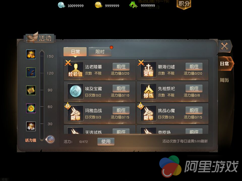 大家可以通过每天的那个活力值获得金币,只要你活力值达到一定数值,就可以获得定量金币。不过这比较耗,忙人勿选......还有法老陵墓、亚特兰蒂斯或者天下英雄这样的活动也是可以获得金币的哟,只要你花一定去玩玩,金币很快就进账啦!