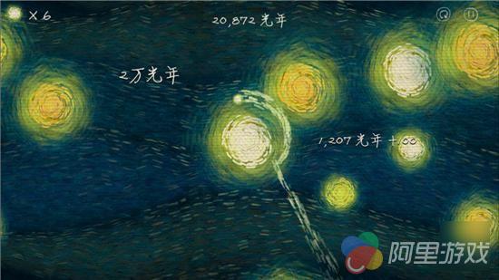 当光球围绕星星旋转时会自行补充光能,有意思的是每当光球飞出或是在另一颗星星上着陆时,场景中的星星也会有所增加或减少,因此玩家不必急忙点击展开二次飞行,看清楚再行动才能飞的更远。每一次飞行不管距离长短系统都会记录下距离并且进行累计,每增加 1 万光年就意味着解锁了一个检查点,一旦失败就可以从最近的节点开始,因此十万光年并不是一个遥远的距离。