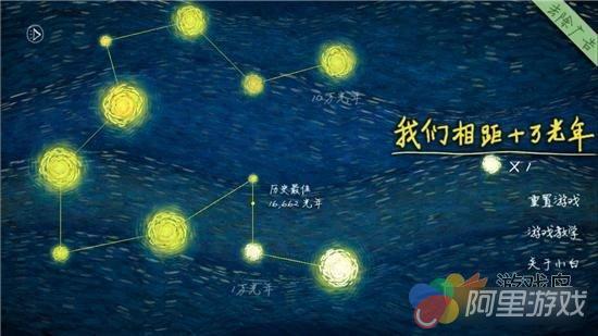 《我们相距十万光年》是太小白工作室推出的一款独立休闲小游戏,游戏会带领我们来到深邃的星空,玩家需要引导光线从一颗星星飞向另一颗星星,在不断的飞行中,系统会记录下我们的飞行距离,而我们的目标是:十万光年!至于能不能达到这个目标,还是要看玩家在时机上是否能够把握得当。