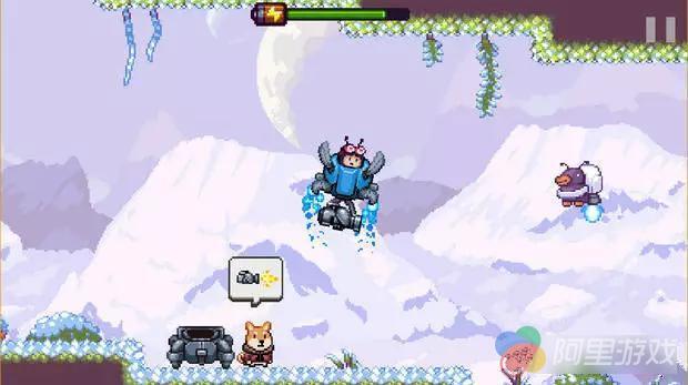 《天空追逐者》玩法究竟有多简单?你只需要摁住手机屏幕两边,控制飞行器的喷射就好。游戏中无论是解密还是携带物品,都只要飞到物品上面就能解决。 但就像掌握水管工的跳跃需要大量时间,控制Max的飞行器也不一个简单的事情。尽管只有两个按键,但如何依靠左右喷射器维持平衡并躲避陷阱,都是需要多加练习的。 游戏的生命值为电池电量,在不同环境下飞行会有不同的耗电量,在被怪物攻击或者碰到陷阱时也会导致电量消耗。在冒险中可以收集金币,砖石,这些都可以补充电量,捡到电池更是可以直接补满。游戏地图中还分布着数量繁多的“加油站”,Max可以在这里保存进度和维修飞行器。