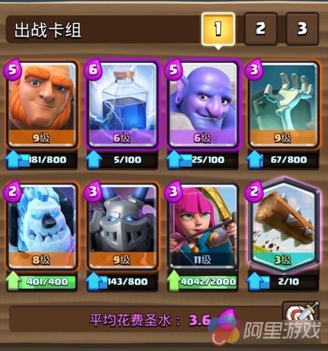 改良版大电胖,相对传统大电胖,将箭雨改成了冰人,大大增加了防守能力,使整套卡组变得相对均衡,更加针对地面型卡组。核心思路是利用胖子、蓝胖子和铁苍蝇推进,弓箭手和墓碑可攻可守,法术择机施放。这套卡的缺点在于缺乏对空的AOE输出,会被天狗套这样的飞行卡组克制。