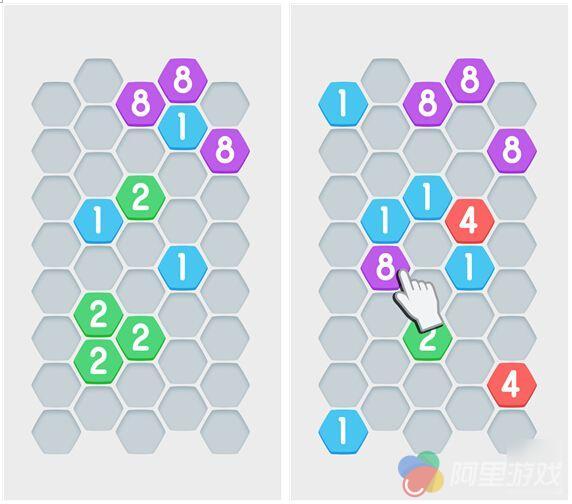 玩法方面,求合体我想大家应该都很熟悉了,不过在这里开发商加入了一些限制,比如必须四个及以上的相同数值方块相邻才能合成一个四倍于该数值的方块,并且在合成的过程中,要确保各个方块的移动路径通畅,如果每一次移动不能够达成合体的话,那么系统就会在任意位置生成若干方块,一旦占满便动无可动,这是游戏宣告失败的最大原因。