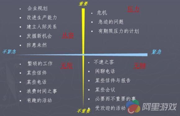 四象限法则简单说来就是处理什么事先做,什么事后做,虽然说起来简单,但如果你不经大脑一股子罗列的话,全部事情堆在一起显然是一个让人纠结的问题。这时候我们就需要用到四象限法则。