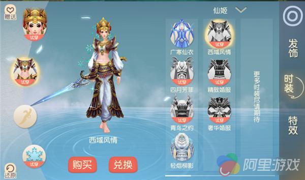 “西域风情”时装和发饰可通过珠玉、锦缎兑换或者直接购买获得。7天、15天、永久的购买价格分别是208仙玉、408仙玉、880仙玉,包括了时装和发饰,少侠们赶快行动起来买买买吧!
