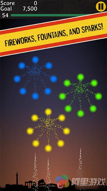 玩家在游戏中要在屏幕上画圈来捕获相同颜色的烟花。玩家需要将相同颜色烟花全部划到一个圈中,圈中的烟花数量越多玩家的分数也就越多,不过如果混入其他颜色烟花,那么就会扣除相应的分数。游戏中会有多样道具出现,这些道具将会有不同的效果,可以帮助玩家获得更高的分数。