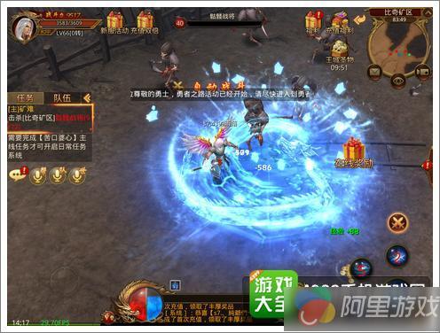 游戏一开始的那扇大门让很多老玩家倍感熟悉吧,打开这扇大门,我们就将进入一个魔法世界。如果是老一代的玩家应该都记得曾经《传奇》那种灰暗的像素世界吧,随着时代的变迁,游戏画面质量也有了长足的进步,本作在画面清晰度上并没有让大家失望,高清效果跃然纸上,3D的画面形式保持了传统的风格,细腻的人物描绘以及宏伟的背景设计,这些都将游戏的感官质量大大提升,以满足越来越苛刻的玩家视觉需求。