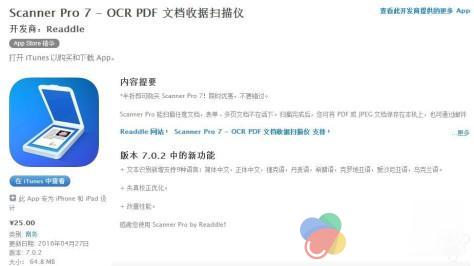 4 月 27 日,开发商再推 7.0.2 版本更新,在此前文本识别的 12 种语言:英语、德语、意语、法语、西语、俄语、葡语、荷兰语、土耳其语、波兰语、瑞典语以及挪威语基础上,追加 9 种语言:简体中文、繁体中文、捷克语、丹麦语、希腊语、克罗地亚语、爱沙尼亚语、乌克兰语。至此《Scanner Pro 7》的 OCR 总共可以识别 21 种语言。