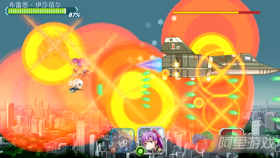 《音速少女队》作为一款纯正的二次元游戏,画面自然是游戏的重中之重了,游戏中拥有多达50多位不同的战姬,每位都拥有着精美的人设立绘、战斗时Q萌的二头身和知名声优的配音,游戏中少女和战机结合,让玩家体会到和其他空战射击游戏完全不一样的感受,除了精美的人物,《音速少女队》在游戏的战斗场景上也是极为精致的,虽然是空战游戏的战斗场景但是《音速少女队》并不是像同类型游戏一样将战斗场景放在较为取巧的海天之间,而是将战斗场景放在了全球各大地区间,破碎的都市,潮湿的雨林,干旱的沙漠以及充满未来科技感的基地这些战斗场景在细节上充实了整个游戏,让玩家便利地融入游戏世界的同时感受到游戏制作这的诚意。