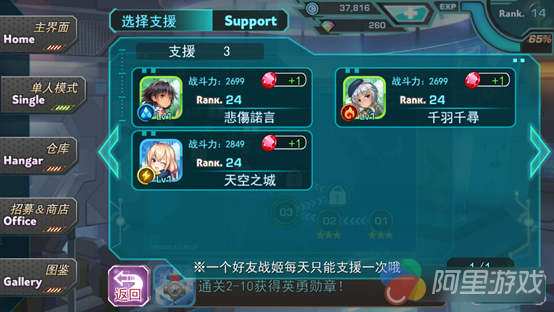 在同类型的游戏中社交一直是游戏的痛脚所在,贫乏的社交体系让玩家怀疑自己是否在玩单机游戏,而《音速少女队》的僚机体系则解决了这个问题,玩家在游戏中可以邀请其他玩家作为自己的僚机来共同战斗,在游戏结束后还可以向对方发出好友请求,深化了游戏的可玩性。