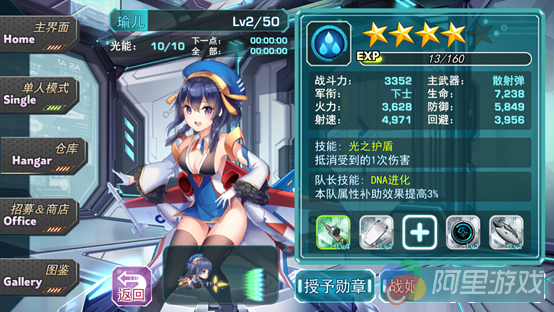 策略养成是此类游戏中必不可少的一点了,虽然是同质化严重的玩法,《音速少女队》还是在这一方面尽量做出了新意,游戏中采用角色和装备的双养成体系,值得一提的是《音速少女队》的装备采用的都是战机的真实部件名称,在游戏的装备养成中让玩家感受到另类的换装乐趣。