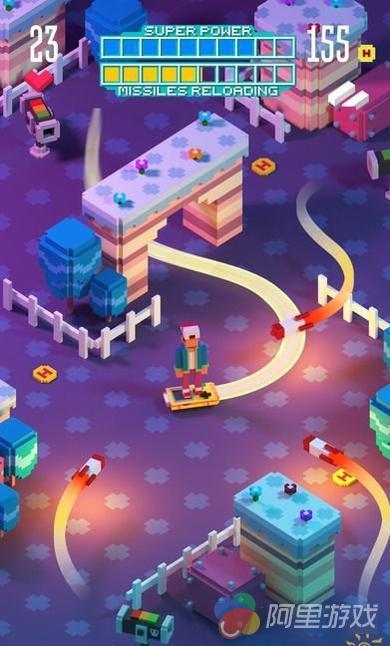 有趣的是,你别以为躲避障碍就够了,在你的身后还有火箭随时追击你,你要不断甩开它们。在路途中你还可以收集道具,使用子弹喷涂抢、气泡盾等武器摧毁障碍。本作预定在10月13日上架,就目前来看,它确实相当有意思,值得我们期盼它的到来。