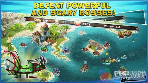 《Fort Defenders 7 seas》是一款以海战为背景的策略塔防游戏,此类背景题材的游戏比较少见,还是颇有新鲜感的。游戏场景地图全部是在海上或者近海的港口,玩家们需要在周围的岛上或者是港口设立炮塔来进行防守。本作包含了 4 个世界 80 个关卡,随着关卡的深入,不同种类的防御塔也会慢慢解锁。