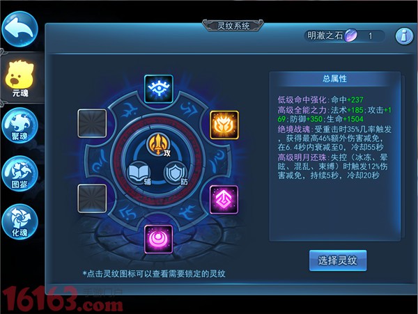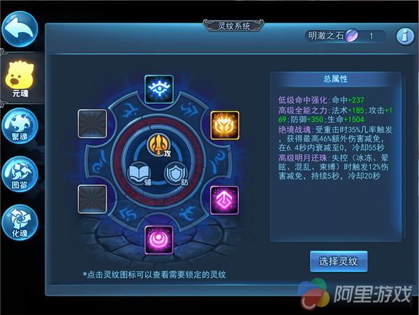 灵纹是自心渊中发掘出的心智符文,通过神秘的镌刻技艺,将灵纹与元魂的意志融合,可以增强元魂的属性或使其获得额外的技能。每名元魂最多能镌刻六枚灵纹。初始两枚灵纹的镌刻是必定成功的。自镌刻第三枚灵纹开始,镌刻灵纹时有几率发生灵纹湮灭,一枚已有的灵纹消失,而新灵纹替代它的位置。已镌刻的灵纹越多,灵纹湮灭的几率越高。