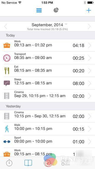 《aTimeLogger 2》是一款规划生活的每日时间记录软件,软件包含了每天你能做到所有类别,点击对应的图标即可开始。用户只需要在每个事情开始前打开软件记录下来,每天结束前观看一下就可以知道今天是如何度过的了。此外软件还支持后台锁屏运行。