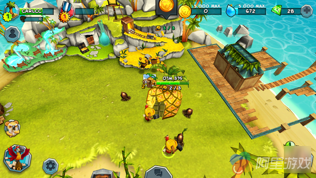 别看游戏主题是冰冷而残酷的战争题材,但开发团队却用各种卡通造型与萌物设计,巧妙的将这一主题轻松化、娱乐化,大量颜色的运用使整个游戏看起来相当的鲜艳精美,而卡通风格的角色形象也将“蠢萌”这一王道特点描绘的淋漓尽致。至于音乐方面,贴合游戏主题的战斗BGM与能够衬托热带风情的音效结合的还算不错,总体来说,音画方面本作的表现还算不错。