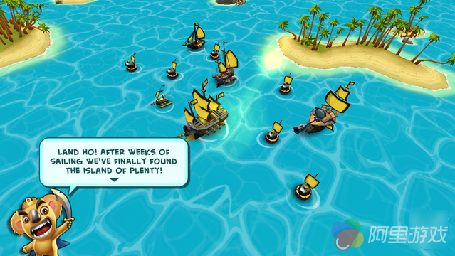 操作方面,鉴于平板或者手机等移动设备的局限性,本作特别针对其进行了优化,无论是指派员工修建建筑,还是指挥舰船发动攻击,都只需要点击己方单位,再朝着目标拖拽过去即可,简单方便。当然,除了船舰之间的对战,攻击敌方的岛屿也是游戏的一个重要部分。敌方控制的岛屿会被大门和围墙仅仅包围,玩家不仅要面对敌方的舰队,还要尽可能快地破坏掉岛屿的防御工事。