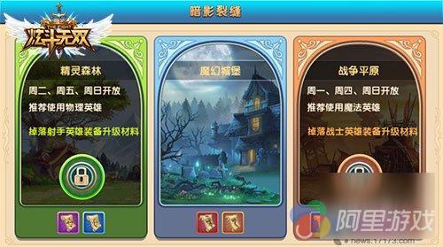 “暗影裂缝”玩法有精灵森林、魔幻城堡、战争平原三大地图,三大地图开放的时间贯穿了一周,非常人性化。让玩家工作日有限的游戏时间得到合理利用,可以有计划的进行不同职业的装备打造。周日三大地图全部开启,玩家可选择性进行所需装备材料的突袭补充。