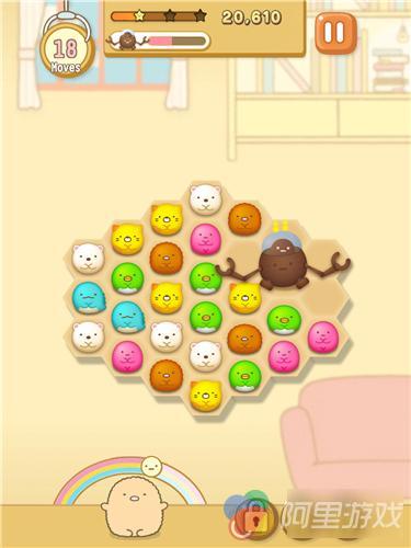 再来说说玩法,《角落生物》跟其他消除游戏玩法类似,4个相同图案连接即可消除。游戏的道具很有特色,而且除了横、竖、斜可以清除以外,消除足够的图案还可以进行环形消除。和可爱的白熊、企鹅、炸猪排、猫一起体验充满乐趣的关卡。