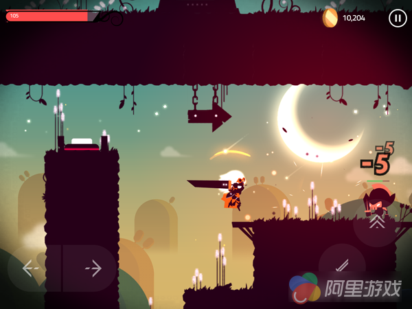挥砍长剑一路斩杀敌人,跳过障碍跨越险境,游戏通过关卡的衔接,将冒险元素与战斗紧密联系,再加入积分制,提升玩家扫图的兴趣,让每一个关卡都能够完整的发挥全部的功能。当面对这些怪物的时候,玩家只需要一个按键就能打出一整套动作,但如果激进的按下前进键配合攻击,那么一定会吃苦头。再渺小的怪物都需要谨慎对待,即使你已经看到了后方的血瓶,但也会不希望这种鲁莽战斗的习惯影响你接下去的游戏进程,而且游戏的战斗部分本身就是一种趣味,不必急着跳过。