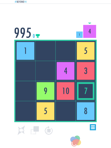 这款游戏并没有什么华丽的界面,四四方方的几何图形看起来也并没有太多的新鲜感,可以说如果不是别人推荐小编尝试的话还真不能入我法眼。所谓的“超越14”顾名思义就是要在游戏中将方块的数字按照规则合出 14,当然这个数字上不封顶,达到 14 的话可以说你的智商一定不低。