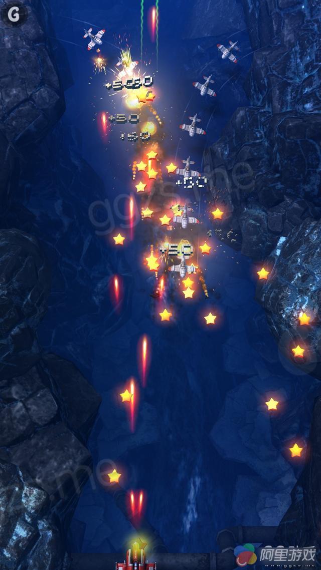 游戏中玩家只能不断重复击毁敌机—获得星星—拯救战友这个过程,与当年雷电的玩法差别不大,只是无法在游戏时获得武器升级奖励。