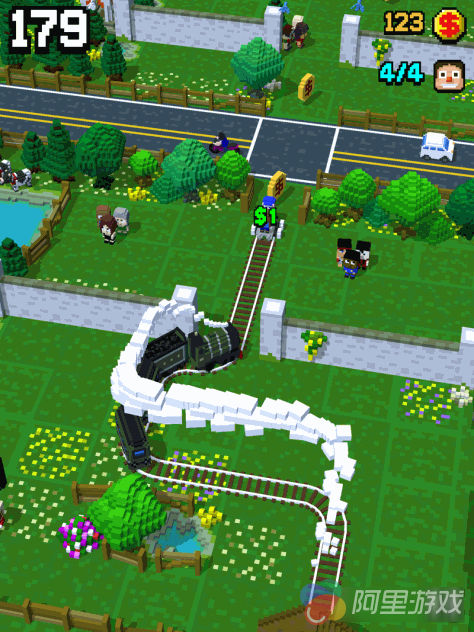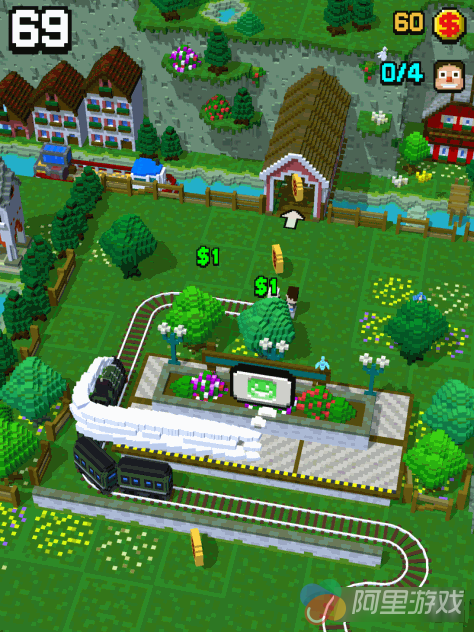 游戏的操作还是比较简单的,玩家向上划动手指就会开始游戏,此时玩家的车就会开始往前行驶,火车也紧跟在后。当玩家的小车撞到障碍物的时候就会停下,玩家可以通过划动手指的方式让其转弯,玩家看到场景中出现乘客的时候可以将铁轨铺到他们身前,当火车经过的时候乘客就会自动上车了,而当到了火车站的时候玩家需要按照一定的方向铺设铁路。值得注意的是,玩家要避免自己的小车被身后的火车追尾,所以要及时改变行驶方向,不要在障碍物处停滞太久,而且也不能与之前铺设的铁轨重合,玩家只能行驶在没有铁轨的地方。