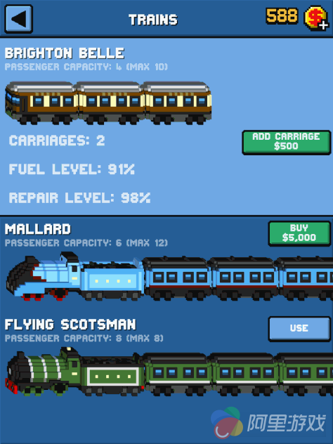 除了乘客之外,在场景中还会散落一些金币和游戏币,玩家直接行驶过去即可将这些物品收入囊中,通过使用金币玩家可以升级火车或者直接解锁新的火车,而游戏币的作用就是让玩家可以是使用老虎机获得更多的金币,在经过一段时间之后玩家还有机会获得免费的礼物,当然礼物能开出什么东西就要靠运气了。而且游戏中一共有超过100种不同的乘客需要玩家收集,有些乘客只有到了游戏的后期才会出现。