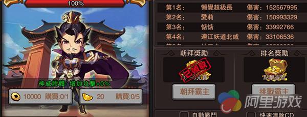 每次挑战霸主后都会有1分钟的冷却CD,冷却结束后才能继续挑战,进入战场后武将和英雄都将自动战斗,玩家无需操作。