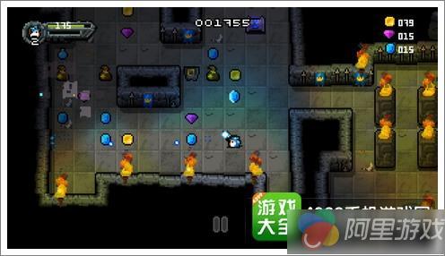 游戏画面采用了2D方式呈现,经典的地牢世界映入眼前,周围环境一片漆黑,只有地牢中偶尔露出的火把能照亮眼前的世界。本作保持了经典的像素风格,主角是两位看不清容貌的勇敢冒险者,地宫中偶尔会有各种邪恶的敌人出现,当然也有各种宝石和金币,这些财富都伴随着危机出现。单从画面上来讲,本作给人的感觉还是不错的,当然与现在流行的高清大作相比确实没有什么优势,不过此类游戏所带给玩家们的并非是视觉上的享受,而是整个冒险过程的体验。