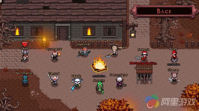 游戏开始玩家可以在火炉周围,在七种角色中自由选择一个。每个角色拥有不同的攻击方式和技能,在玩法上也大不相同,但总有一个角色适合玩家。另外玩过暗黑破坏者的玩家肯定会很熟悉这个选角色的场景,就不知道这是不是制作人有意而为之了。