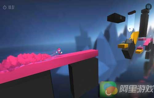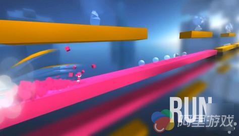 首先从画面上看,背景是打了薄码的朦胧世界,红黄相间的跑道在此衬托下非常耀眼;黄金45°斜后方的上帝视角可清楚观察前方道路,给玩家足够时间预判,这点非常好评。但稍微有了解发行本作的亲爹背景就知道,他们爱好虐手属性的游戏已成业界共识,本作也难逃魔爪_(:зゝ∠)_,具体细节请接着往下瞧!