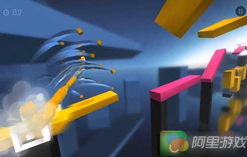 游戏画面采用了斜侧面3D视角,整个游戏场景由悬空的平台构成,玩家需要控制一个虚拟方块小人,在平台进行奔跑,而游戏中的平台是由红、黄、黑三种颜色构成的,我们要通过变换角色身体颜色的方式来完成奔跑过程。游戏画面非常特别,这种色彩单一的跑酷背景小编也是第一次体验,不过奔跑过程中那种极速冲刺的感觉以及偶尔出现的空气流动效果都非常真实,再加上由于速度太快而在人物身后出现的尾气效果,很容易刺激玩家们不断去超越极限。