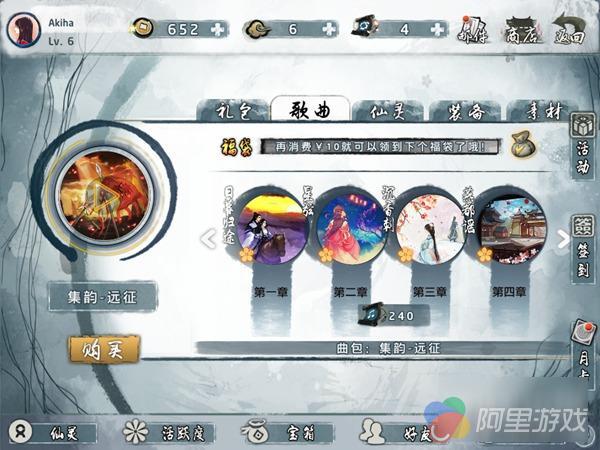 游戏除去前文所述的挑战模式外还有剧情模式和自由模式及日常任务。日常任务中会有三首连续的乐曲可以进行游戏,并有三个不同难度。在游戏中的新歌一般是通过日常任务来玩到的。游戏中还有仙灵系统,游戏中的歌曲分为4种属性,不同的仙灵有不同的技能和属性,这也让游戏有种“卡牌+X”的风格。仙灵可以通过抽取获得,也可以通过收集碎片获得;碎片也可以用来升级……这些在手游中很常见的设计就不再赘述。