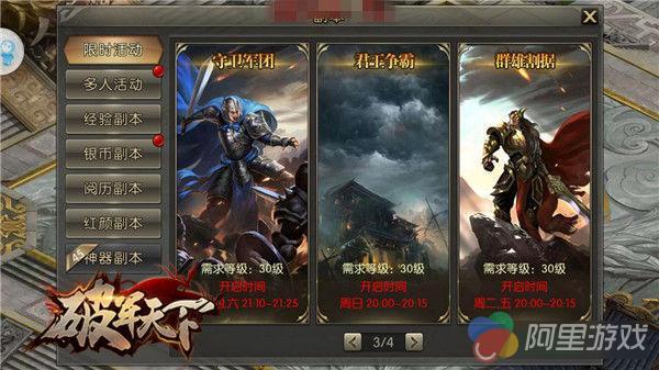 本着国家疆土城池丝毫不让的原则,每位英雄都想在乱世为军团为国家攻占下更多的城池,抵御外来入侵,守卫城池安宁,这些副本的开放时间不要忘记,机会转瞬即逝,尤其是为国家增加城池领地的机遇每周只出现两次。