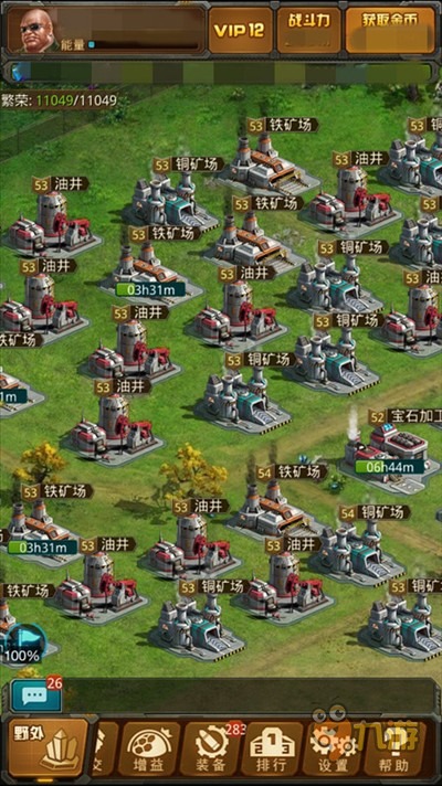 资源可以通过自产和打矿,拉别人基地资源来获得。对于自己的矿建设,很多人都不同。我的观点是矿的建设个数要根据你的VIP等级和主要造的坦克种类来决定!VIP等级越高,出战部队越多,代表着你同时采矿效率越高。对于无VIP的玩家,只有两个出战部队,毫无疑问,他只能采集硅和铜,偶尔宝石。,这样的情况下,无VIP的号,最好是11铁,11油,8铜,产量比较平衡。还可以根据自己主要生产什么种类的坦克来定,主坦克的铁矿要多,主战车的油矿要多,主火炮的铜矿要多。