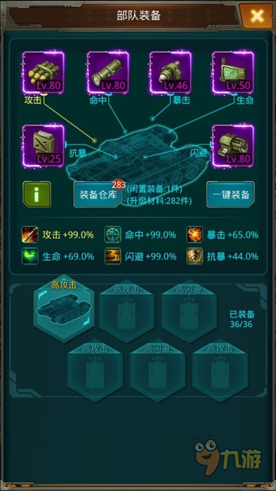 装备:在装备的布置上也是比较有讲究的,生命,闪避和防暴这三项比较好的装备都给前排穿好,攻击,暴击,命中这三项的好装备就给后排装上,特别是闪避,把最好的闪避装备给前排用来抗伤害的那一格装好,能省好多修理费的!