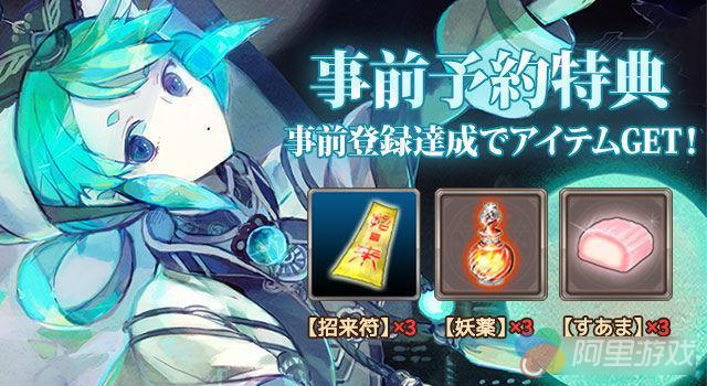 本作预计会在9月21日可是配信,对应iOS和Android双平台,参与预注册的玩家可以获得由3个招来符(转蛋用)、3个妖药和3个寿甘组成的丰厚礼品,随着参与预注册的人数增加,还将会增加更多的特典礼物。