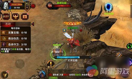 魔法门共分为三个等级,绿色、蓝色、紫色魔法门中含有普通、高级、黄金宝箱,但宝箱周围有为数不少的怪物守卫,击杀守卫开启宝箱就能得到丰厚的奖励。而在魔法门中也有不少因为寻找宝藏而受伤的伤员,只要上前救助,他们就会助你得到更多的经验!